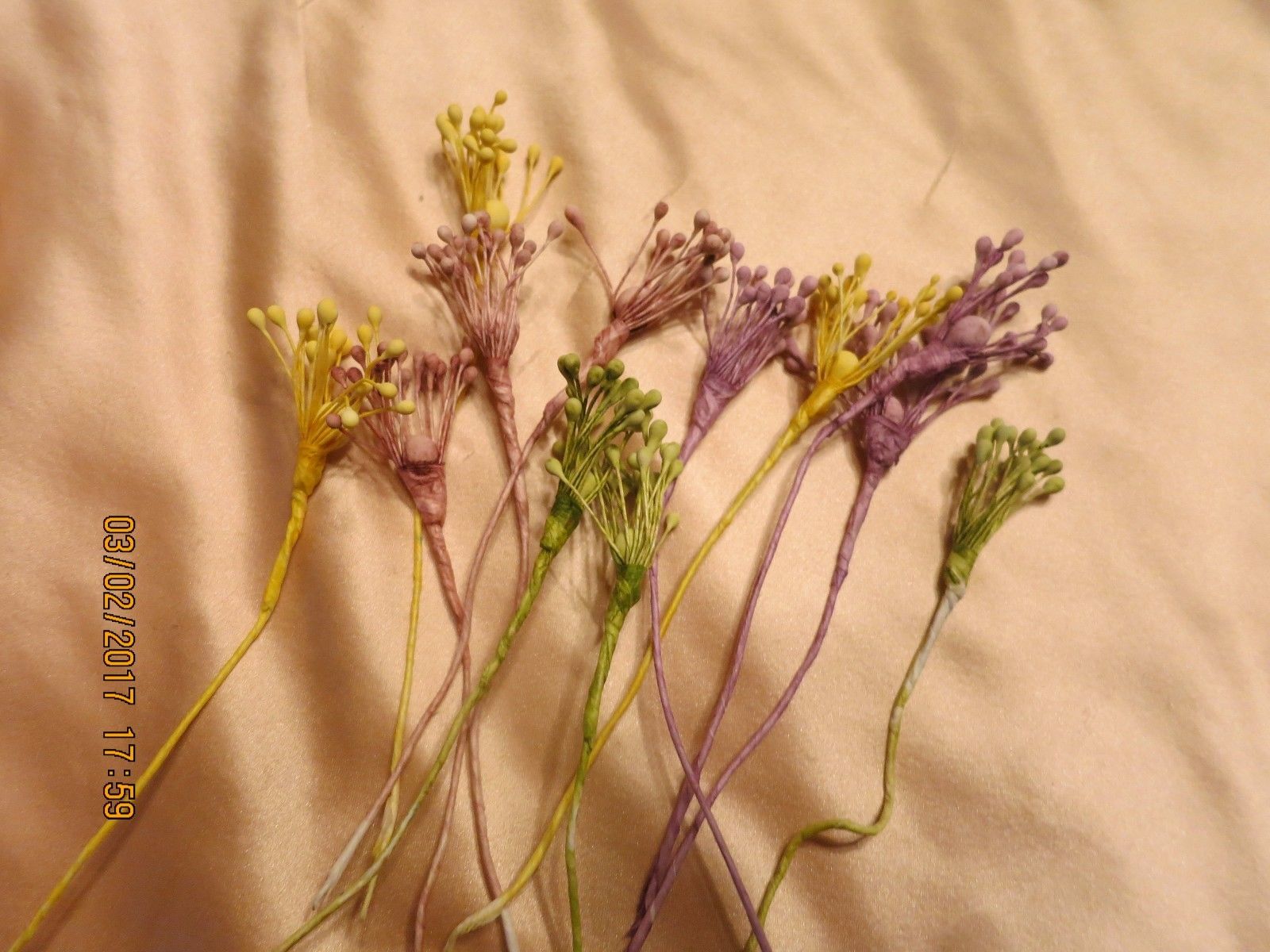 Title (ebay affiliate link): VINTAGE STAMENS 4 COLORS 12 Stems DOLL HATS FLOWER MAKING RIBBON FLOWERS l