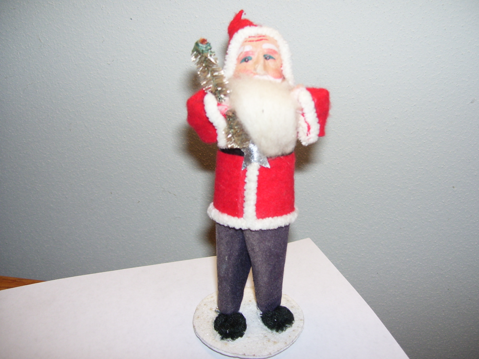 Title (ebay affiliate link): VTG CHRISTMAS SANTA BOTTLE BRUSH TREE CARDBOARD MACHE FACE FIGURINE CLEAN