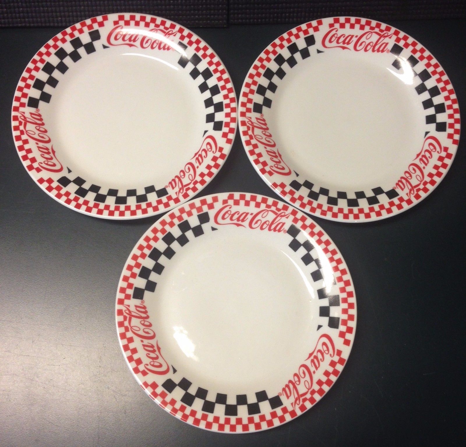 Title (ebay affiliate link): 3 Coca Cola Salad Plates 7-3/4" 1996 Gibson Checker Pattern Red, Black & White