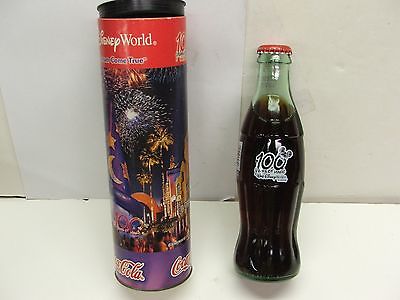 COLLECTIBLE FULL COCA COLA BOTTLE IN TUBE 100 YRS MAGIC WALT DISNEY WORLD 2001