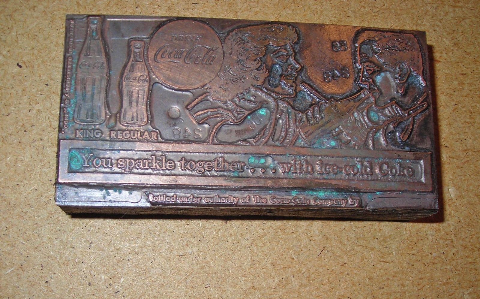 Title (ebay affiliate link): 1950 Coca Cola Printing Plate Block Sparkle Together Newspaper sign Printers