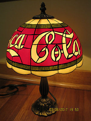 Title (ebay affiliate link): Vintage Coca Cola Lamp Stained Glass Style Acrylic Lamp Shade Ornate Brass Base