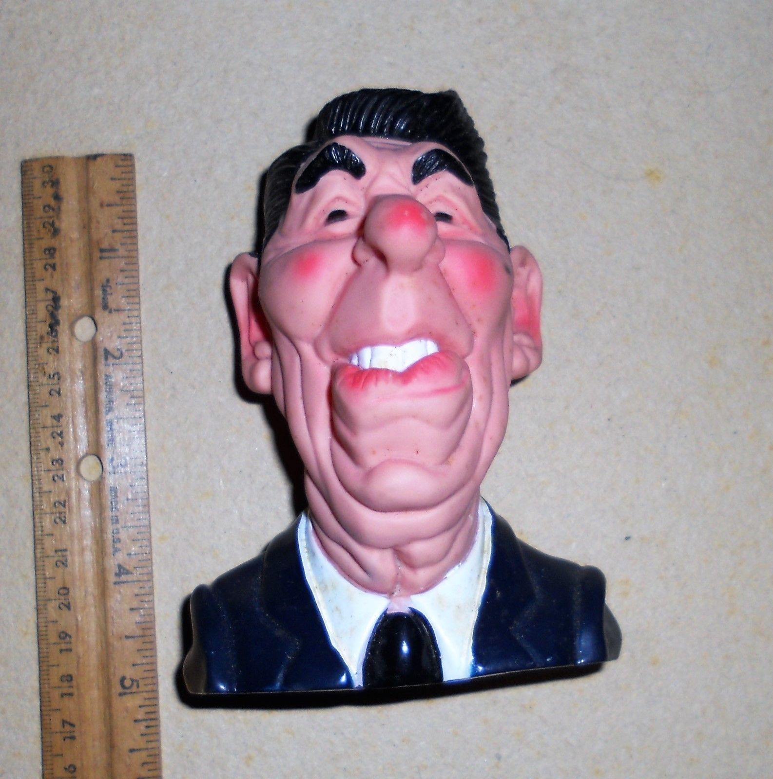 Title (ebay affiliate link): 1989 Linden Spitting Image Ronald Reagan Character Bust Rubber Squeaky Dog Toy