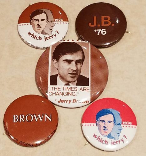 Title (ebay affiliate link): Five Vintage 1976 Jerry Brown Presidential Campaign Pinback Buttons