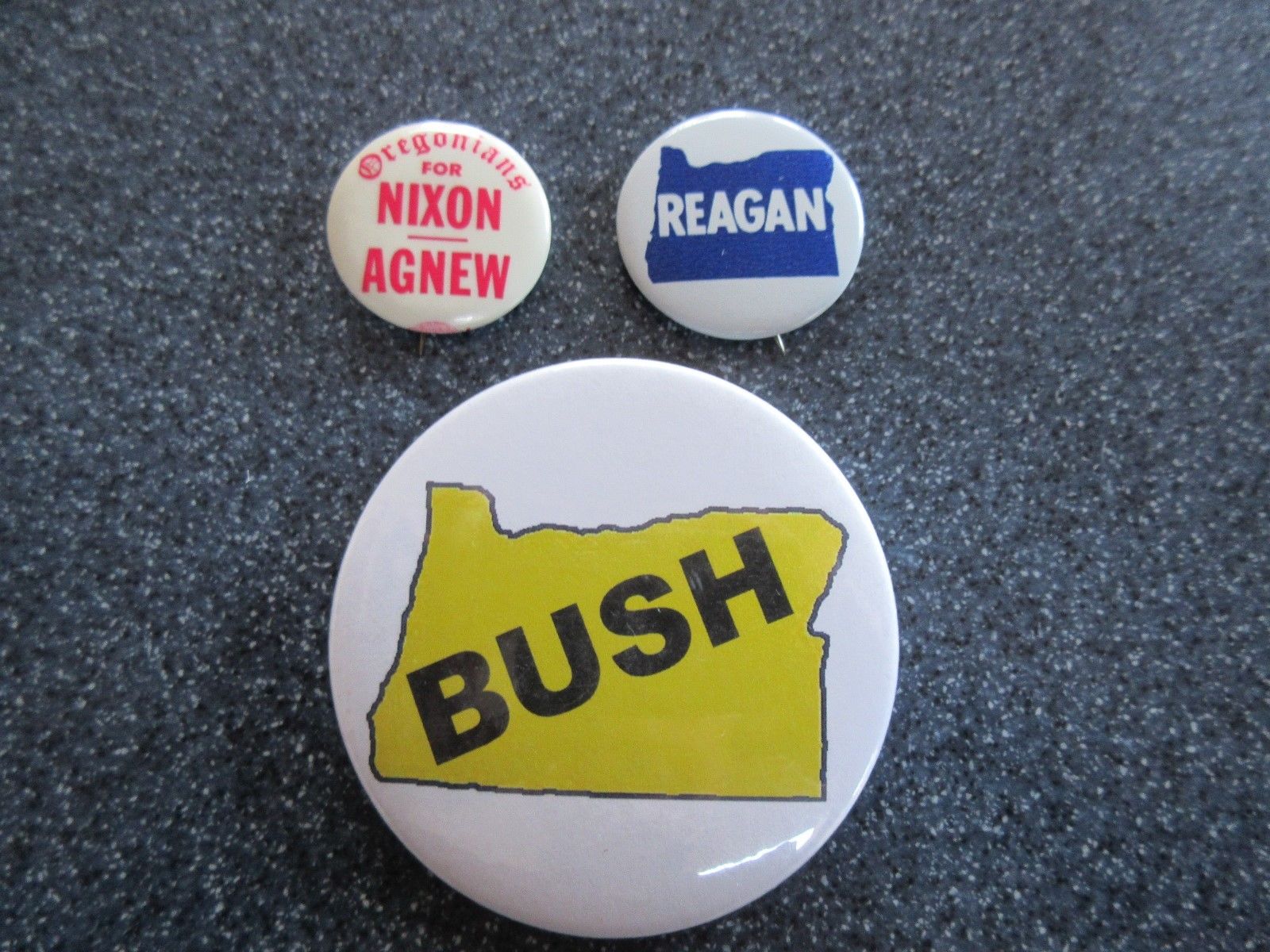 Oregon Reagan, Nixon, and Bush Pin Backs For President Campaign Buttons