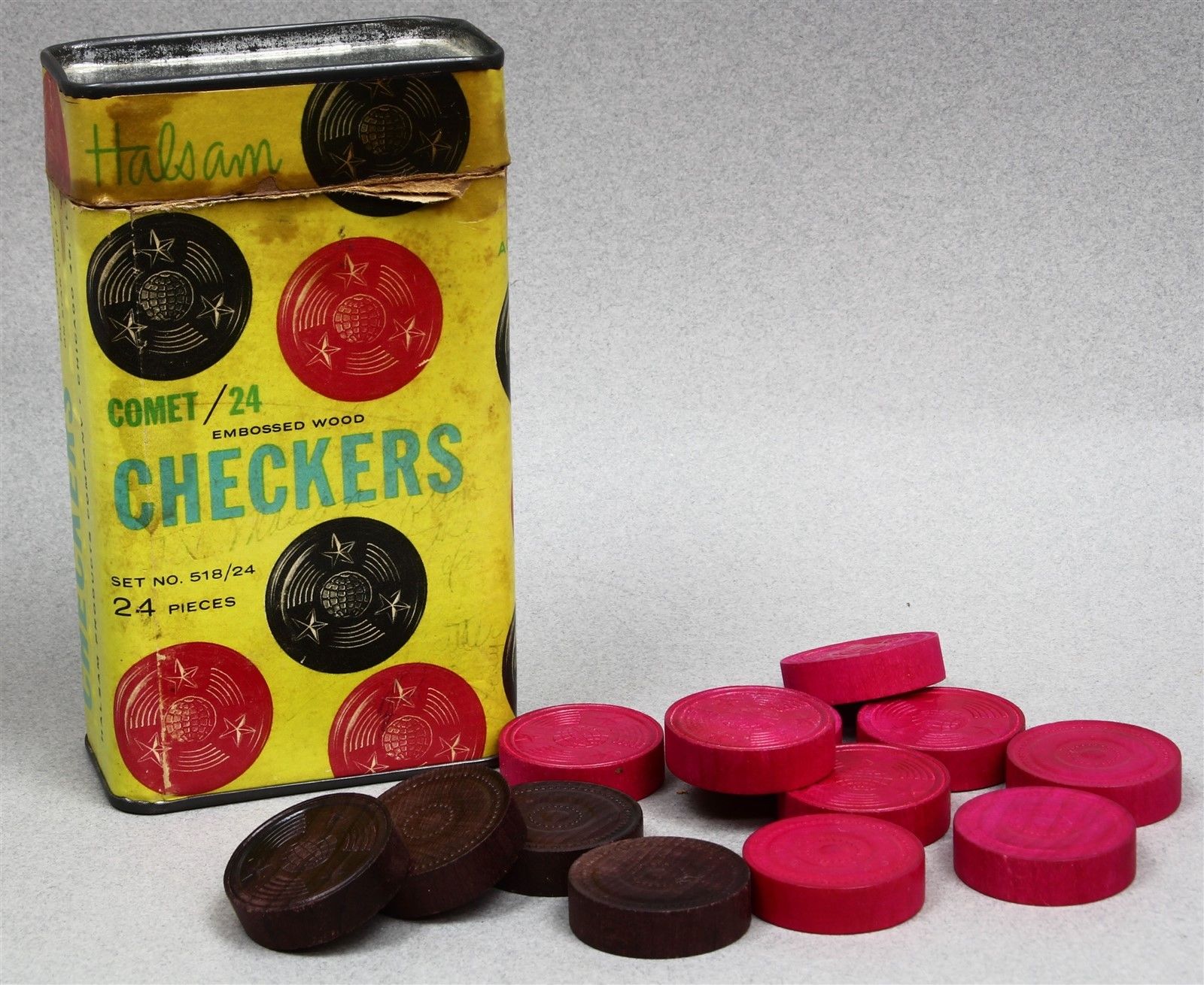 Vintage Halsam #518 Comet Cardboard Box "TIN" w/13 Embossed Wood Checkers