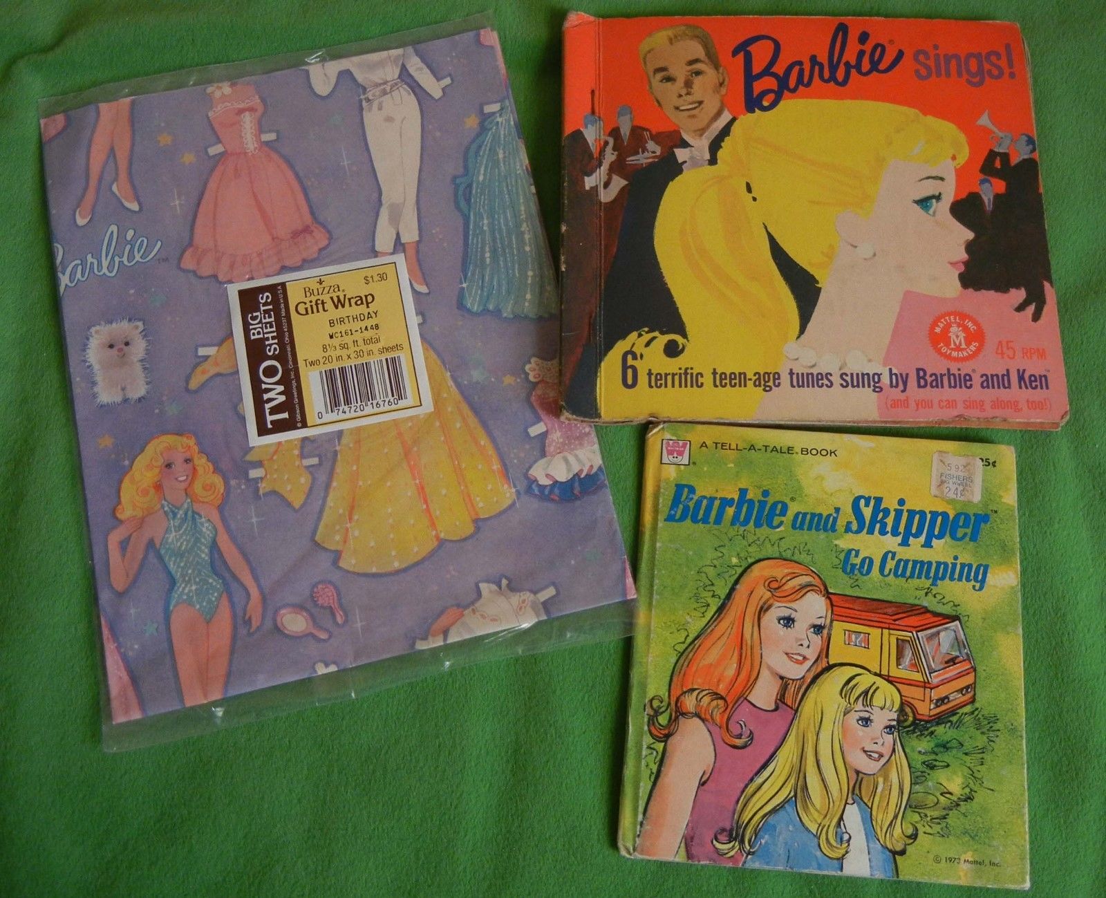 Title (ebay affiliate link): Vintage Mattel Barbie book, records, wrapping paper sealed