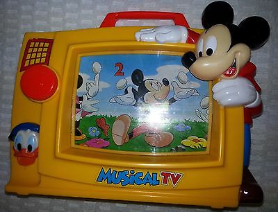 Vtg 1970''s Walt Disney Mickey Mouse & Donald Duck Hand Wind Musical TV Toy Illco