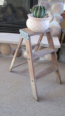 VINTAGE WOODEN 2 STEP FOLDING STEP LADDER ~ STURDY