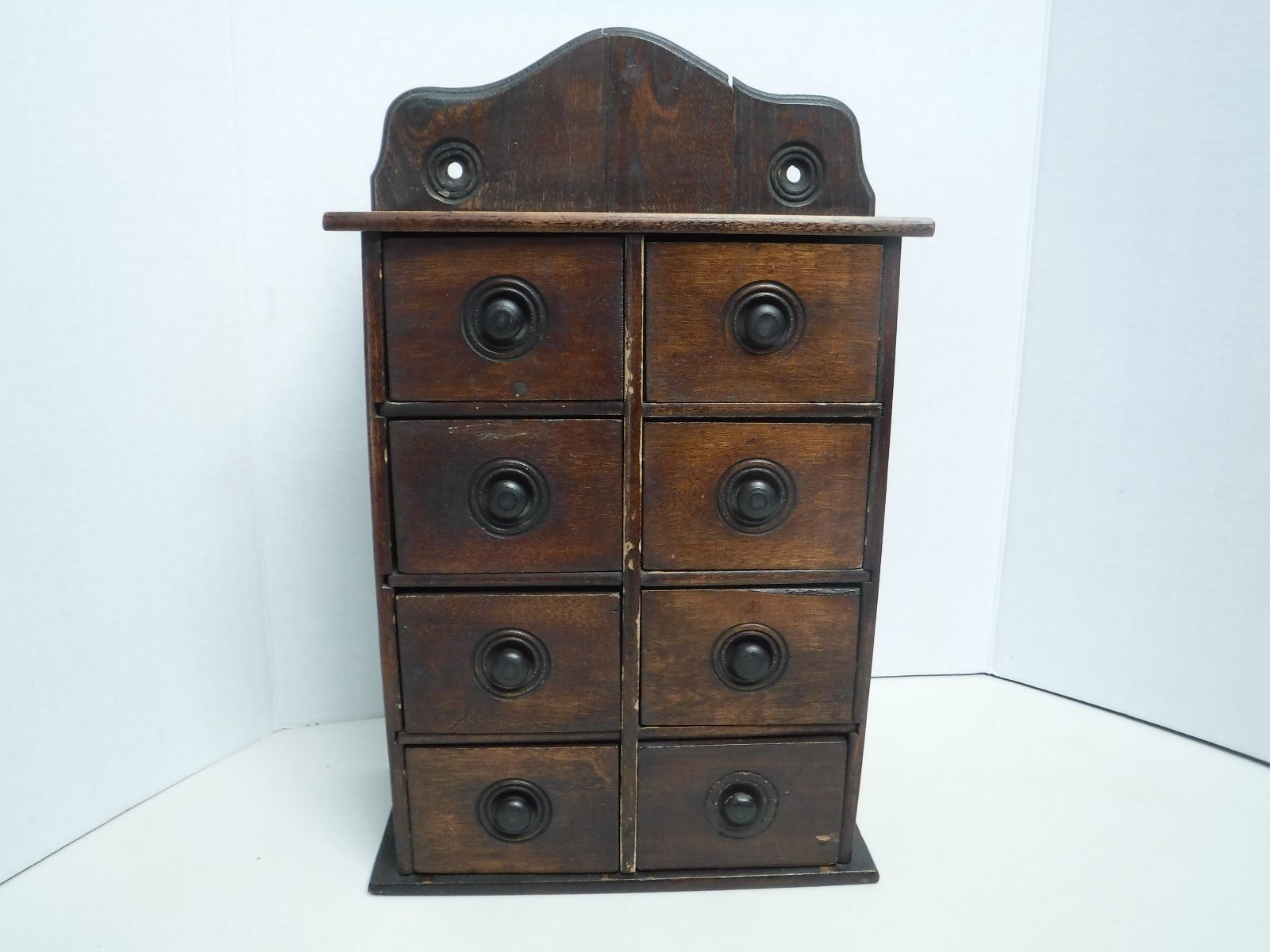 Primitive 8 drawer wooden wall spice box original antique 1800''s