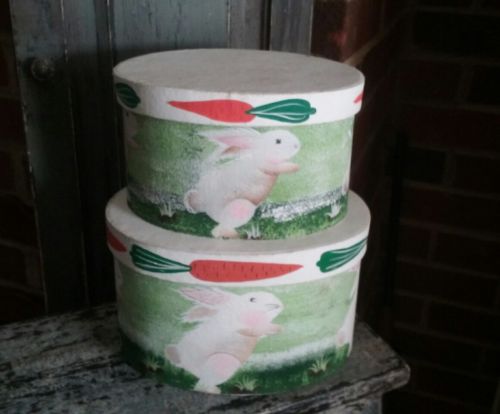 Title (ebay affiliate link): 2 Primitive~Stacking Easter Bunny Rabbit Boxes Spring~Rustic~StoneMtPrim