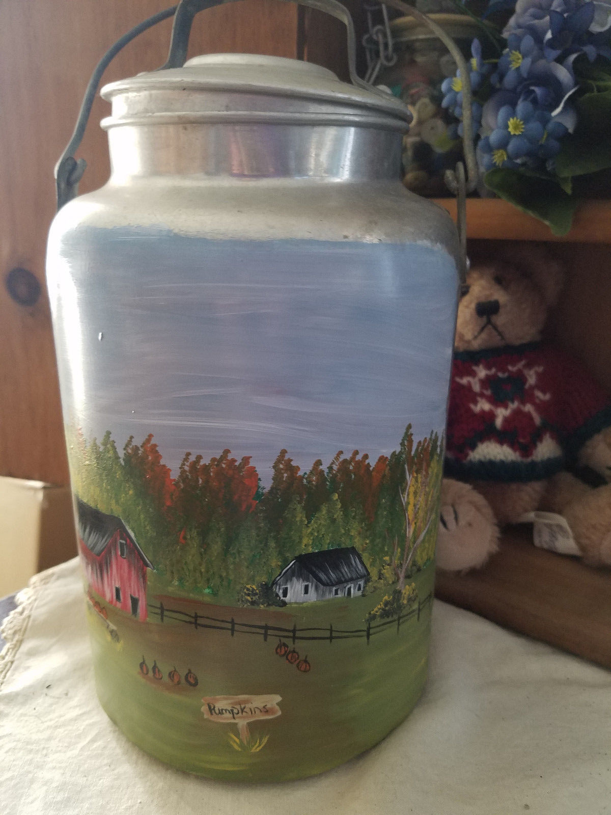 Title (ebay affiliate link): Vintage metal milk pail with hand painted fall scene (0310201701)