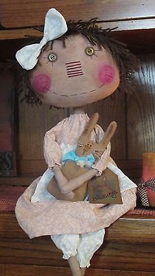 Primitive Folk Art Raggedy Ann Type Doll, Easter, Bunny, Spring