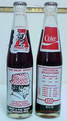 Title (ebay affiliate link): Alabama Bear Bryant Commemorative Coca Cola BOTTLE COKE