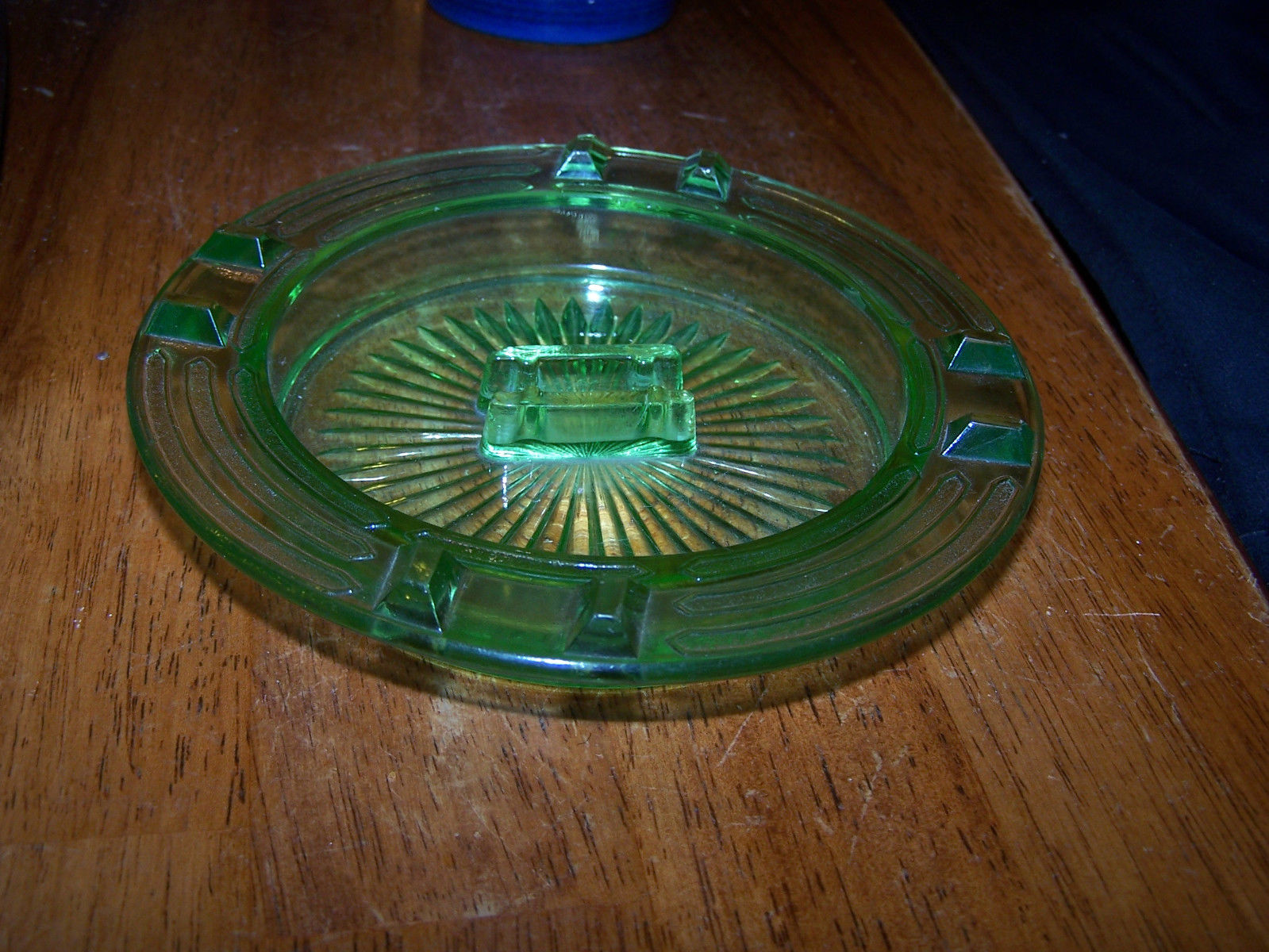 Title (ebay affiliate link): Vintage Green Depression Glass Ashtray with Matchbook Holder LOOK!