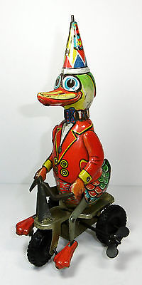 Vintage TIN LITHO WIND-UP DUCK ON A BICYCLE