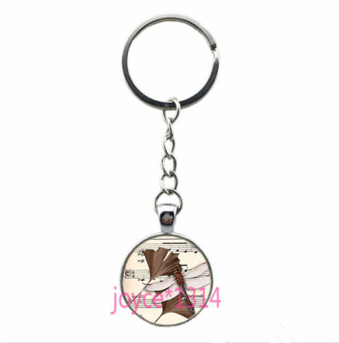 Vintage Dragonfly Cabochon Tibetan silver Glass Chain Pendant Key Ring #YQT-7