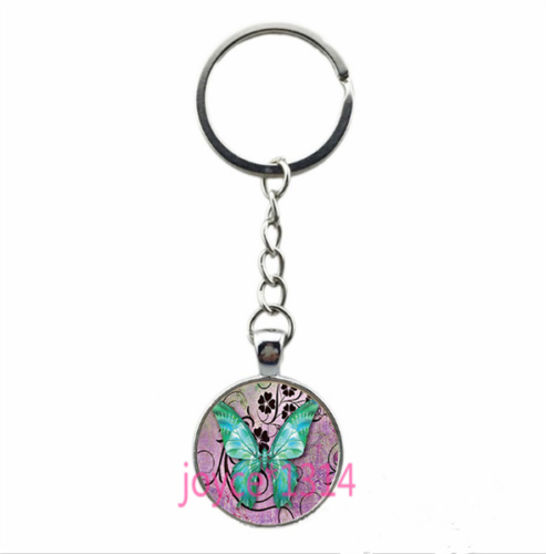 Vintage Butterfly Cabochon Tibetan silver Glass Chain Pendant Key Ring #YHD-6