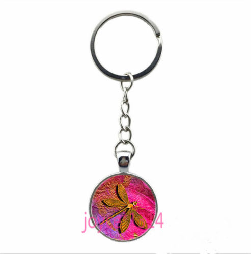 Vintage Dragonfly Cabochon Tibetan silver Glass Chain Pendant Key Ring #YQT-5