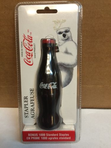 Title (ebay affiliate link): 1998 Coca-Cola New In Package Bottle Shaped Stapler-French & English Package