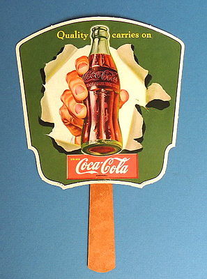 Title (ebay affiliate link): Coca Cola Hand Fan W/Wood Handle ''Quality Carries On''