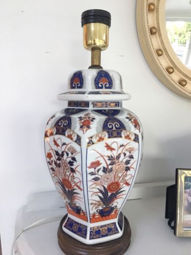 Title (ebay affiliate link): large vintage oriental table lamp ginger jar , white with navy and orange flower
