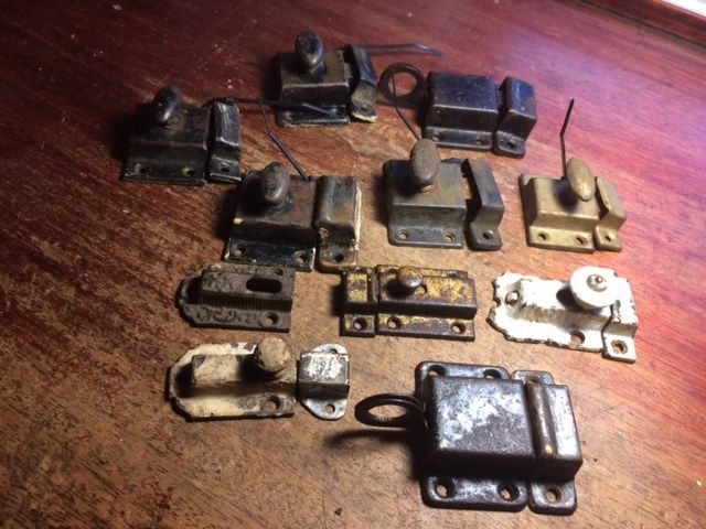 Title (ebay affiliate link): set of 10 vintage turn knob cabinet cupboard pantry door latches catches