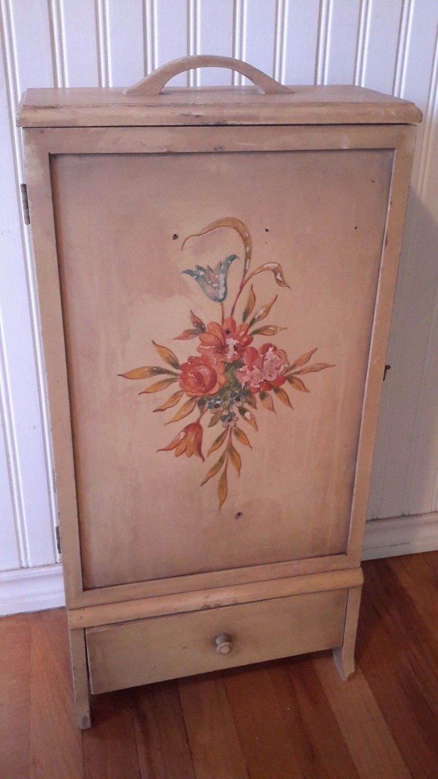 Antique Vintage Shabby Chic Small Hand Painted Wood Cabinet 26 x 13 x 6