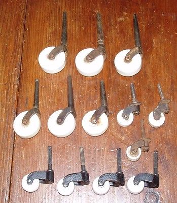 LOT OF 13 CAST IRON AND PORCELAIN CASTER WHEELS