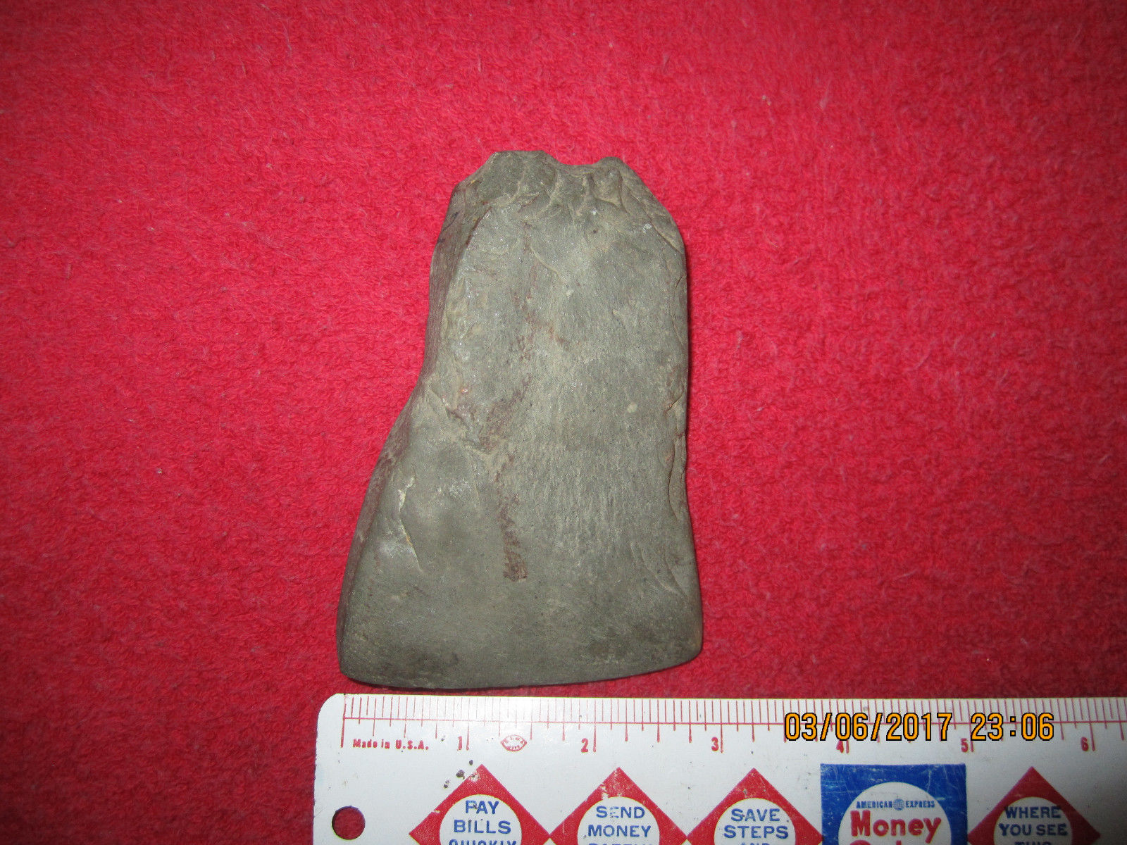 4 1/4" FLARED BIT HARD STONE CELT ( AZTALAN, JEFFERSON COUNTY, WISCONSIN )