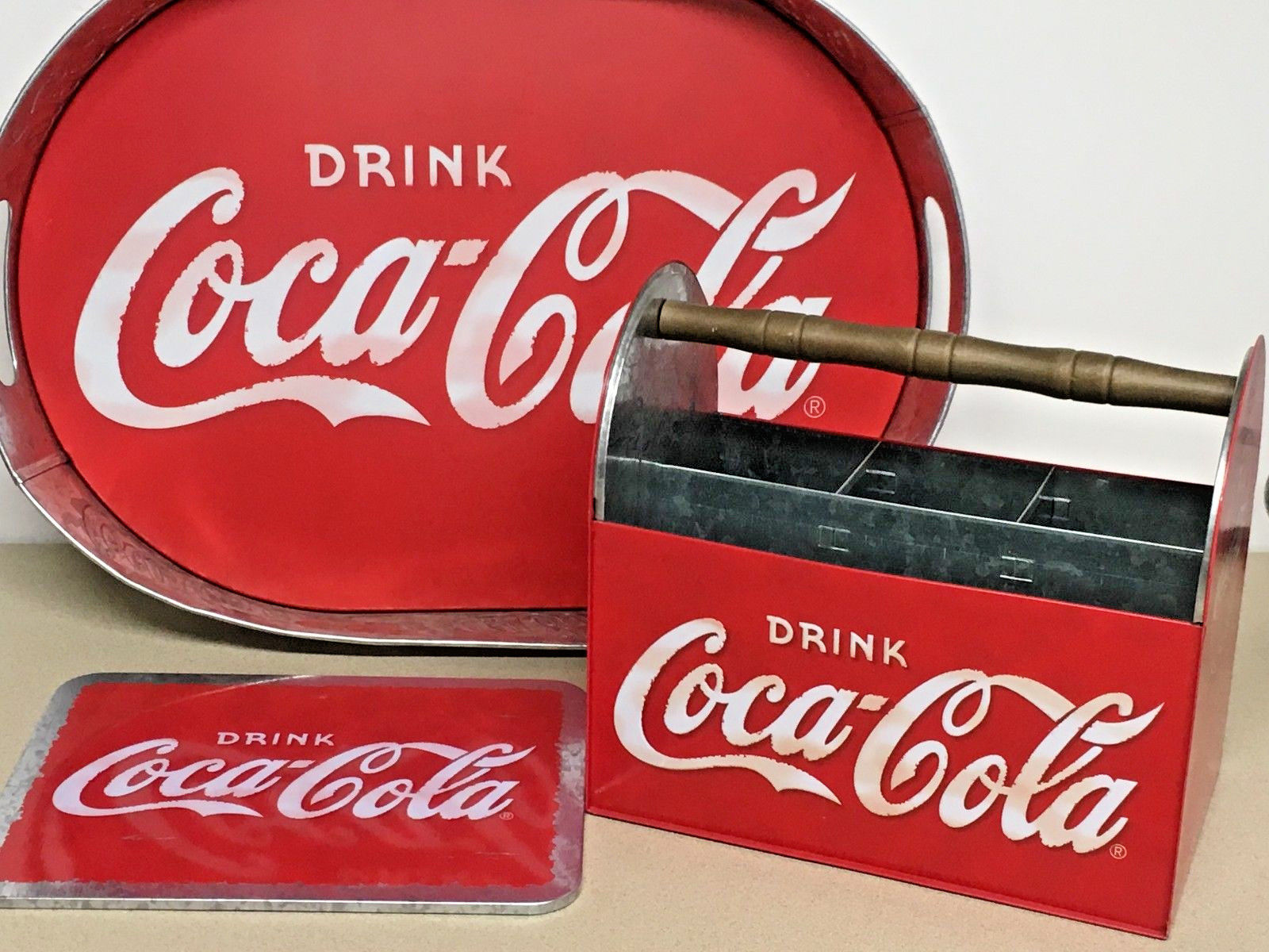 Title (ebay affiliate link): Coca Cola Party Set - Metal Silverware Napkin Holder, Galvanized Tray, Trivet