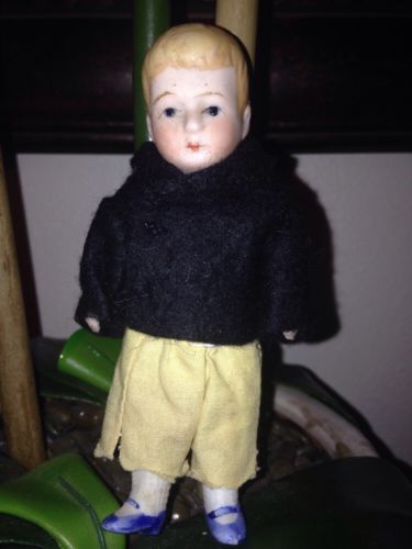 Title (ebay affiliate link): Antique All Bisque Boy Doll in Original Outfit Blonde Hair Blue Shoes Cute!