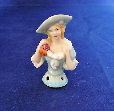 Antique GERMAN Porcelain - Pin Cushion HALF DOLL - 2.75" High - Vgc