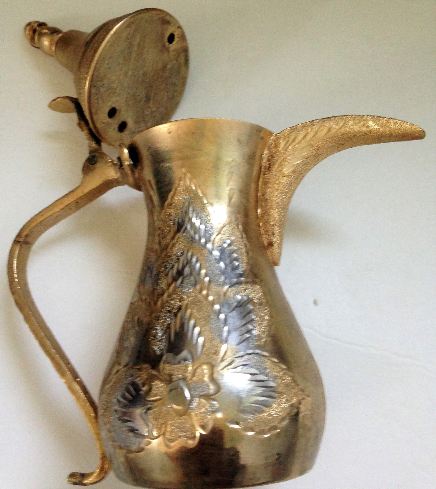 Title (ebay affiliate link): ANTIQUE EGYPTIAN TEA POT Turkish Coffee Server Arabic Old Etched Brass Silver