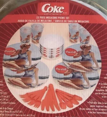 Title (ebay affiliate link): Coca-Cola 25 Piece Picnic Set Melacore Gibson "NEW" Plates Tumblers Bowls - Coke