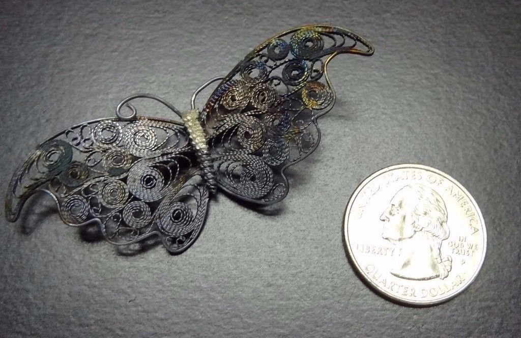 Vintage Antique Silver Brass Tarnished Butterfly Moth Brooch Bouquet Pin AD2