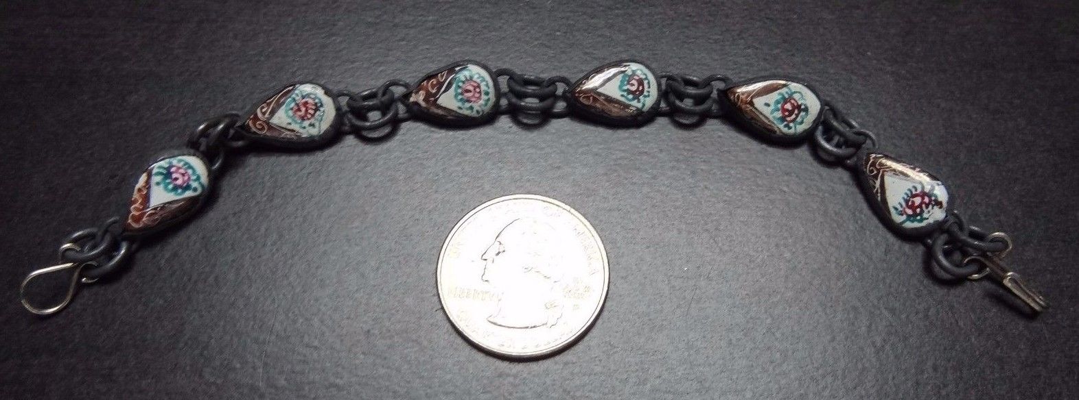 Vintage Antique Turkish Silver 6" Hand Painted Bracelet Tarnished AD9