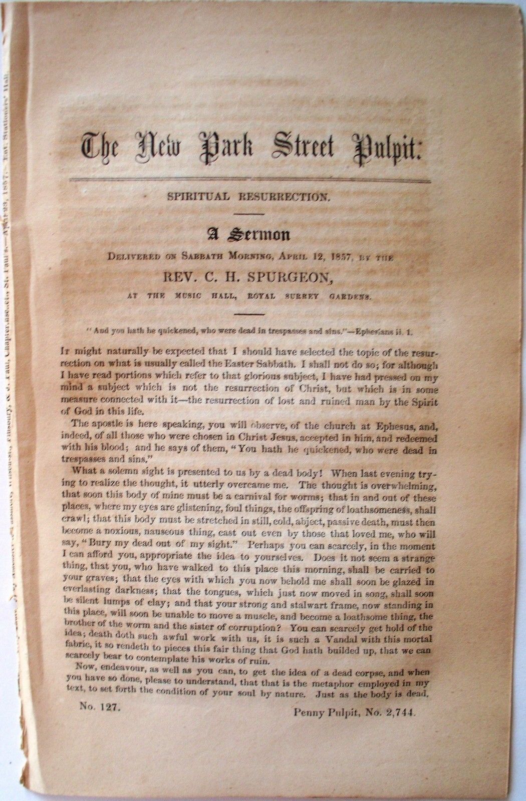 Title (ebay affiliate link): C H Spurgeon - Spiritual Resurrection - Easter Sermon - 1857 - First Edition
