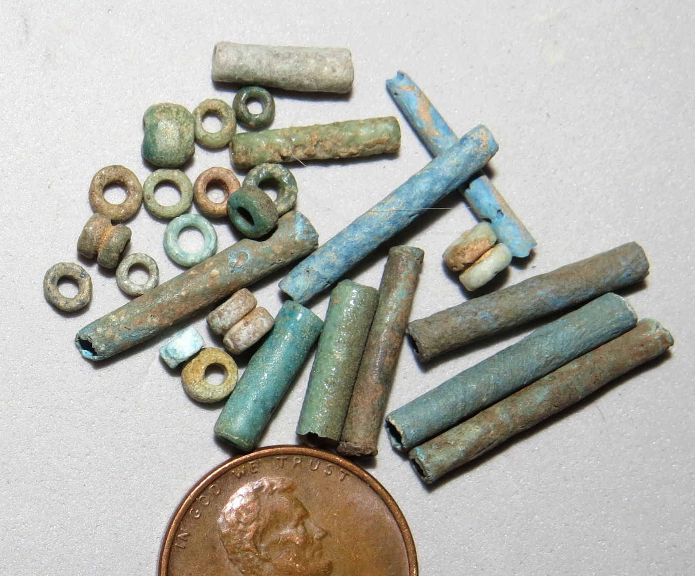 Title (ebay affiliate link): Mitry Ancient Faience Beads Egyptian Mummy, Cylinders PROVENANCE