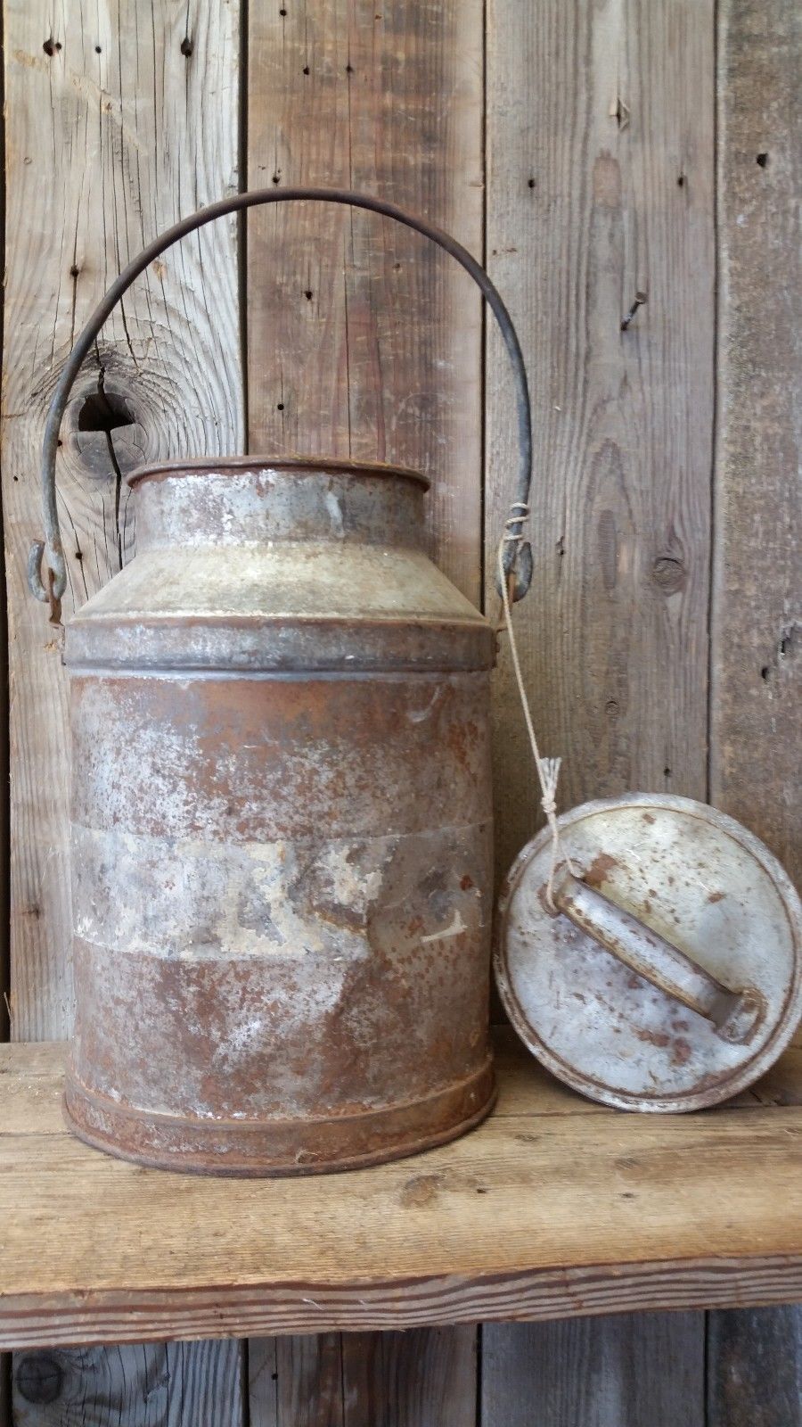 Title (ebay affiliate link): Antique Metal Milk Can W/ Lid ~ Vintage Farm Primitive Rustic Barn Decor 6928