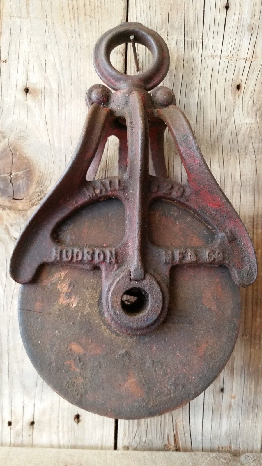 Title (ebay affiliate link): Antique Cast Iron & Wood Hudson Barn Pulley ~ Old Vintage Farm Tool Barn Decor