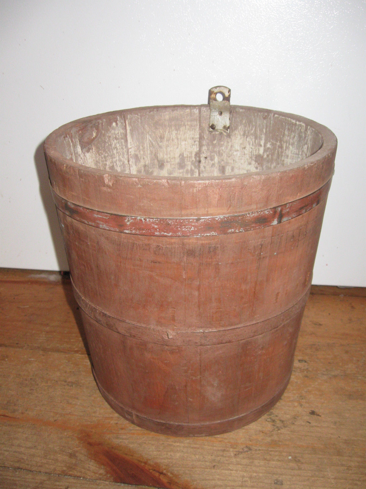 Title (ebay affiliate link): Antique sap Farm Barn Wooden Dry Grain maple syrup Bucket Pail Wood