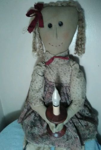 Primitive Folk Art Doll 34" Holding Light !