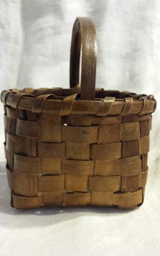 Title (ebay affiliate link): Antique Handmade Small Gathering Basket Carved Wood Handle