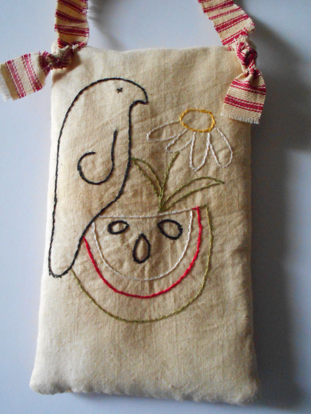 Title (ebay affiliate link): Primitive Crow Pillow Red Ticking Handmade Bowl Filler Ornies Shelf Sitter #1