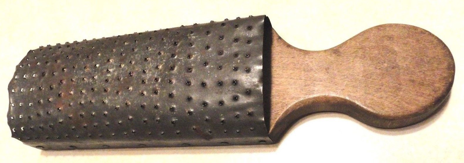 ANTIQUE EARLY PRIMITIVE HAND MADE KITCHEN GRATER WOOD PUNCHED TIN