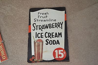 Title (ebay affiliate link): Vtg Cardboard Grocery Store Advertising Sign - Streamline Strawberry Ice Cream