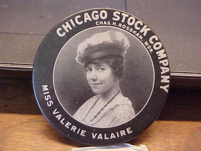 CHICAGO STOCK COMPNAY Miss Valerie Valaire Celluloid Advertising Pocket Mirror