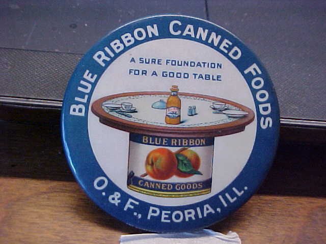 Title (ebay affiliate link): IL Peoria O&F BLUE RIBBON CANNED FOODS Celluloid Advertising Pocket Mirror