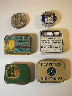 Lot 6 Advertising Medical Sample Tin 1930-50 Apothecary Probe Blechdosen Doll